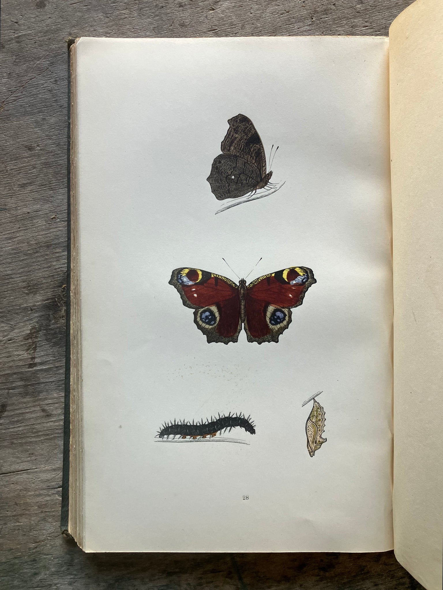 London: Groombridge and Sons, 1868. Hardcover. Small 4to. Very good. Original blind embossed green cloth with gilt title and elaborate gilt design to spine and gilt illustration to front board. Minor bumping to edges. One tiny indentation to spine and two small holes to cloth along rear hinge. Paper with ownership inscription pasted to front pasted down. 71 color plates with intact tissue guards. and two black and white plates showing necessary materials for bug collecting, all with intact tissue guards. Sporadic light spots of foxing and slight age toning. Includes 29 paged "Aphorismata Entomologica" at rear which has light soiling to pages 26 and 27. Else is clean and bright. More photos available. 168 pages + 29 pages. BUG/010826